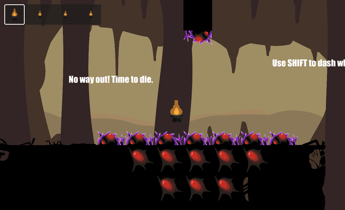 Control the three elements: Fire, Earth and Air in a journey through this hazardous cave. Each elemental has its unique abilities as well as effects they leave after death. Sacrafisce your characters so that the others can pass.